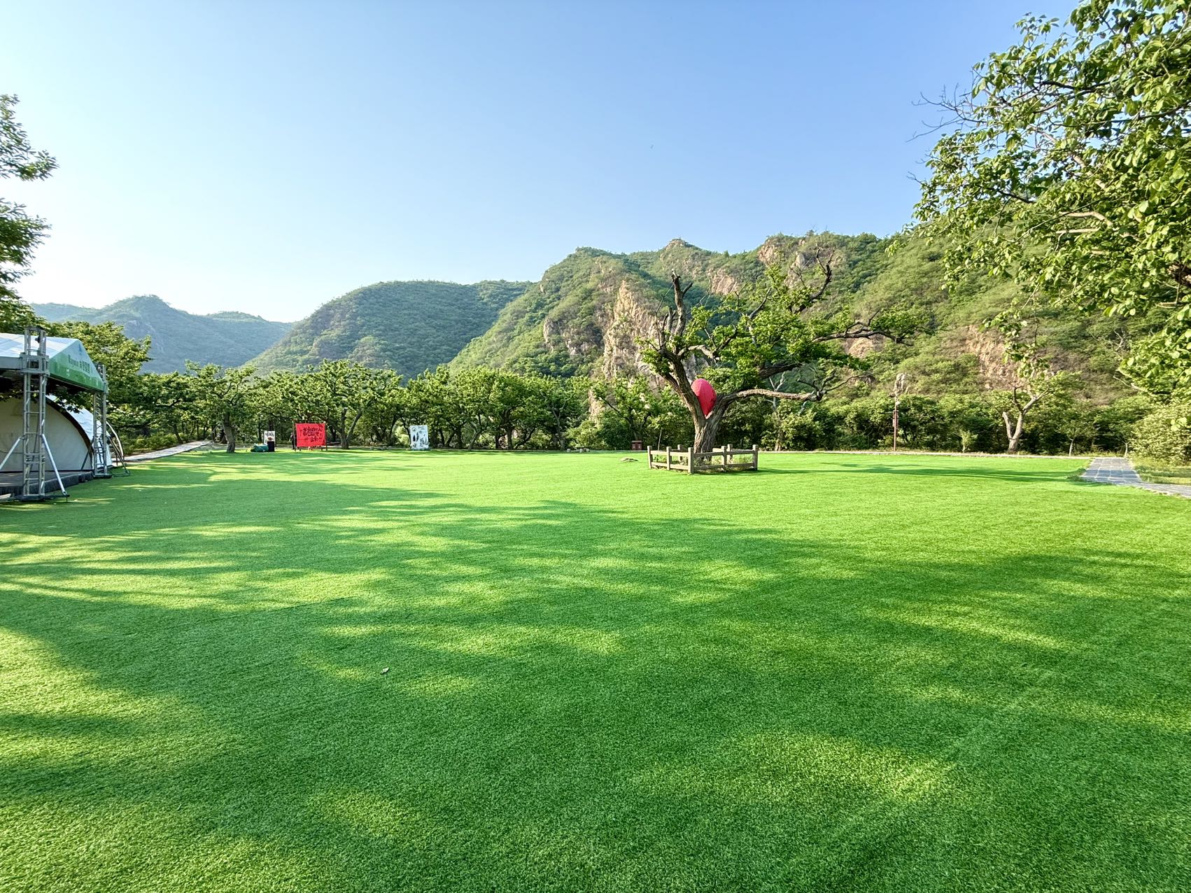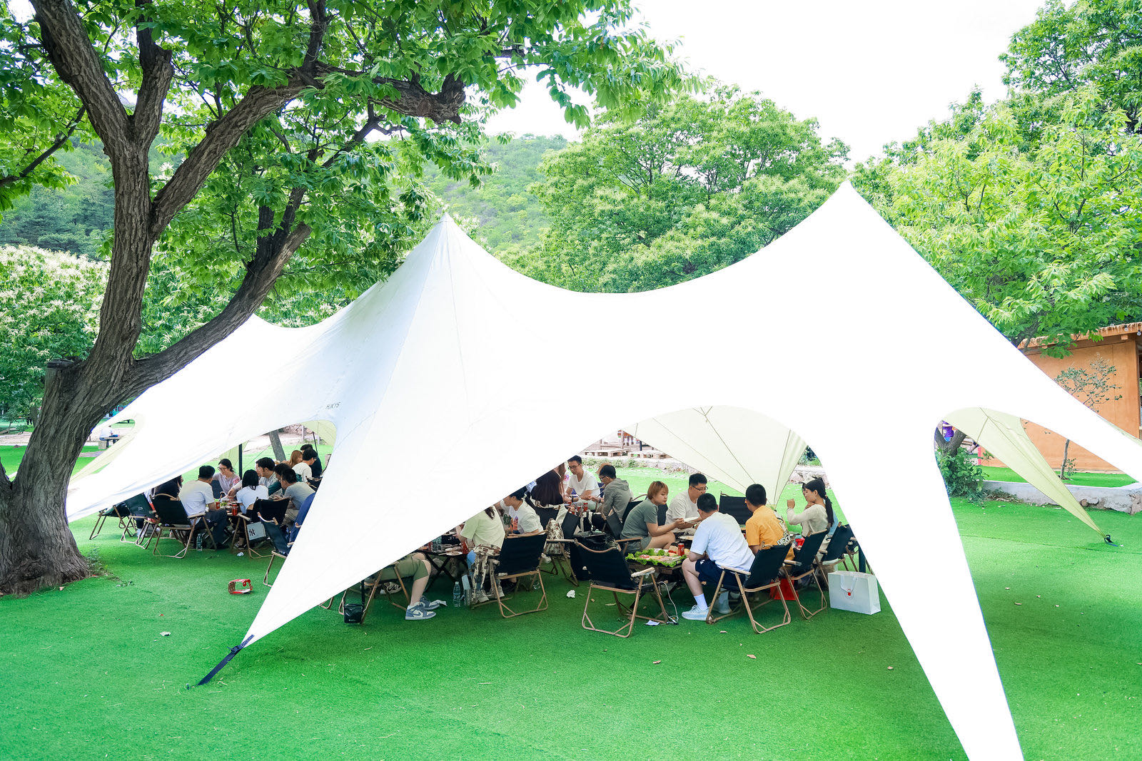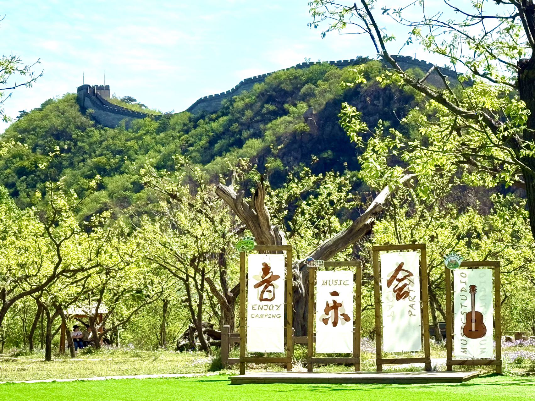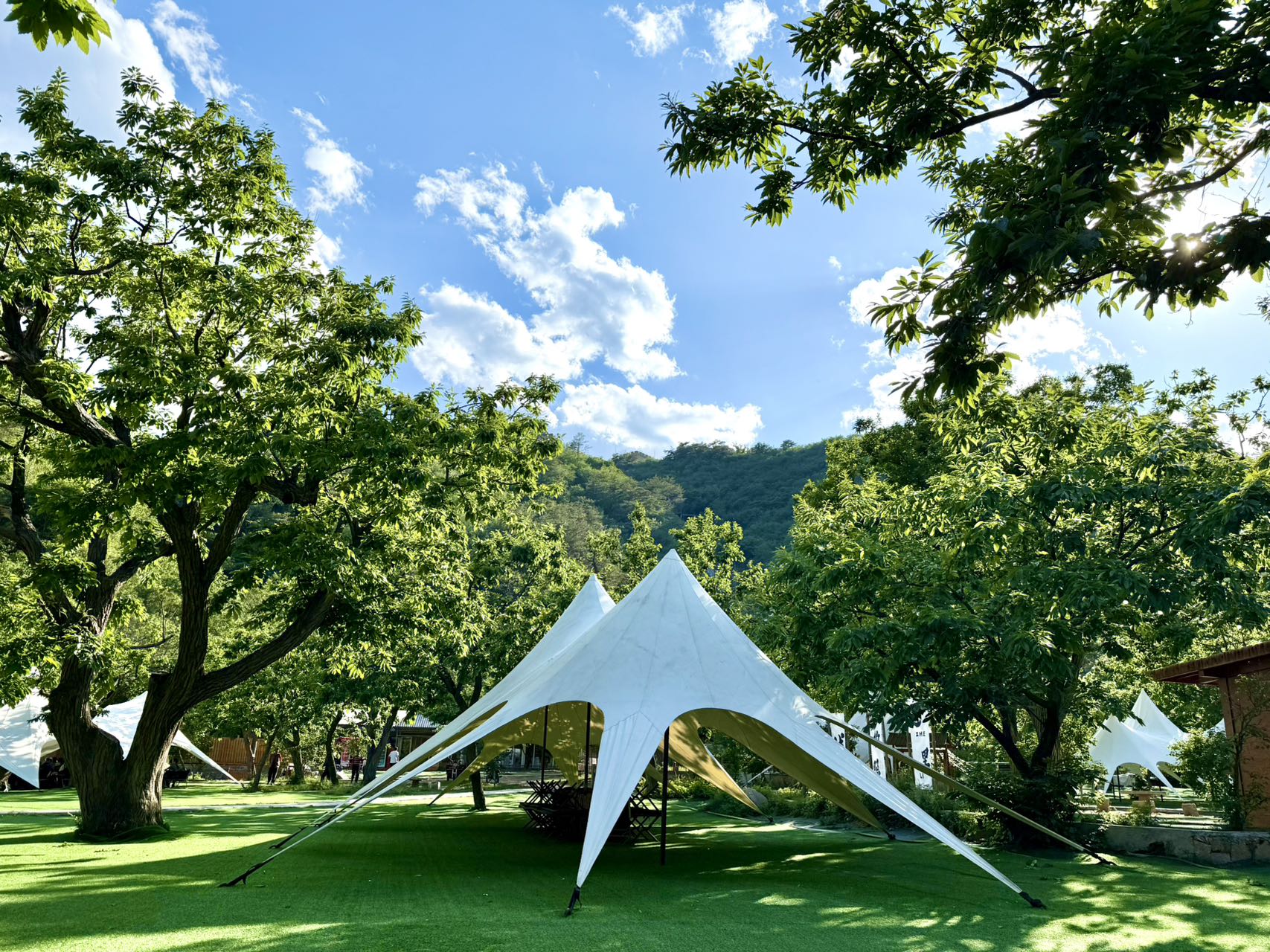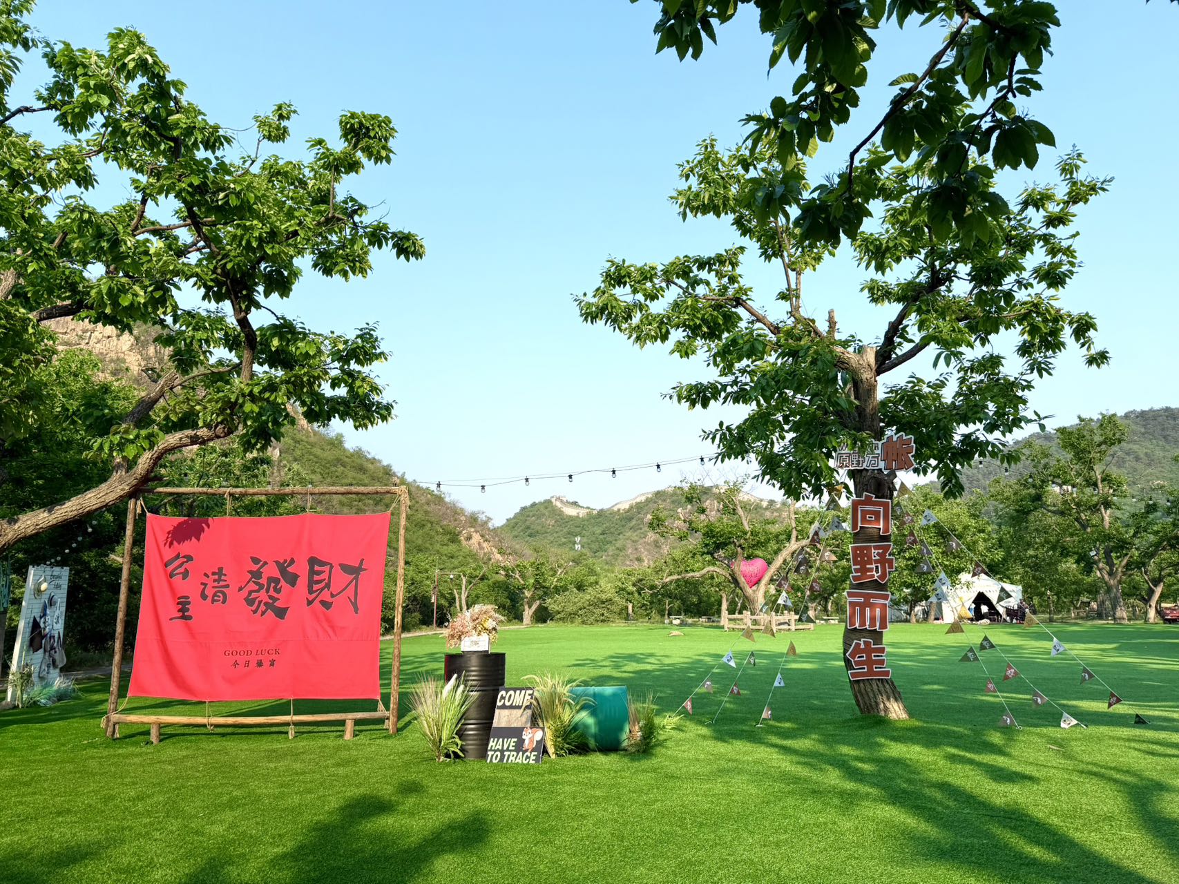 此次我们的目的地是水长城・向野营地,位于黄花城水长城景区明代板栗园内,灏明湖畔、长城脚下,是轻奢日营的露营地。乘景区快艇 5 分钟直达,百年古栗林环绕,提供天幕营位、韩式烤肉、飞盘、桌游等休闲体验,适合一日野餐、小聚与团建,轻松感受山水长城间的露营氛围