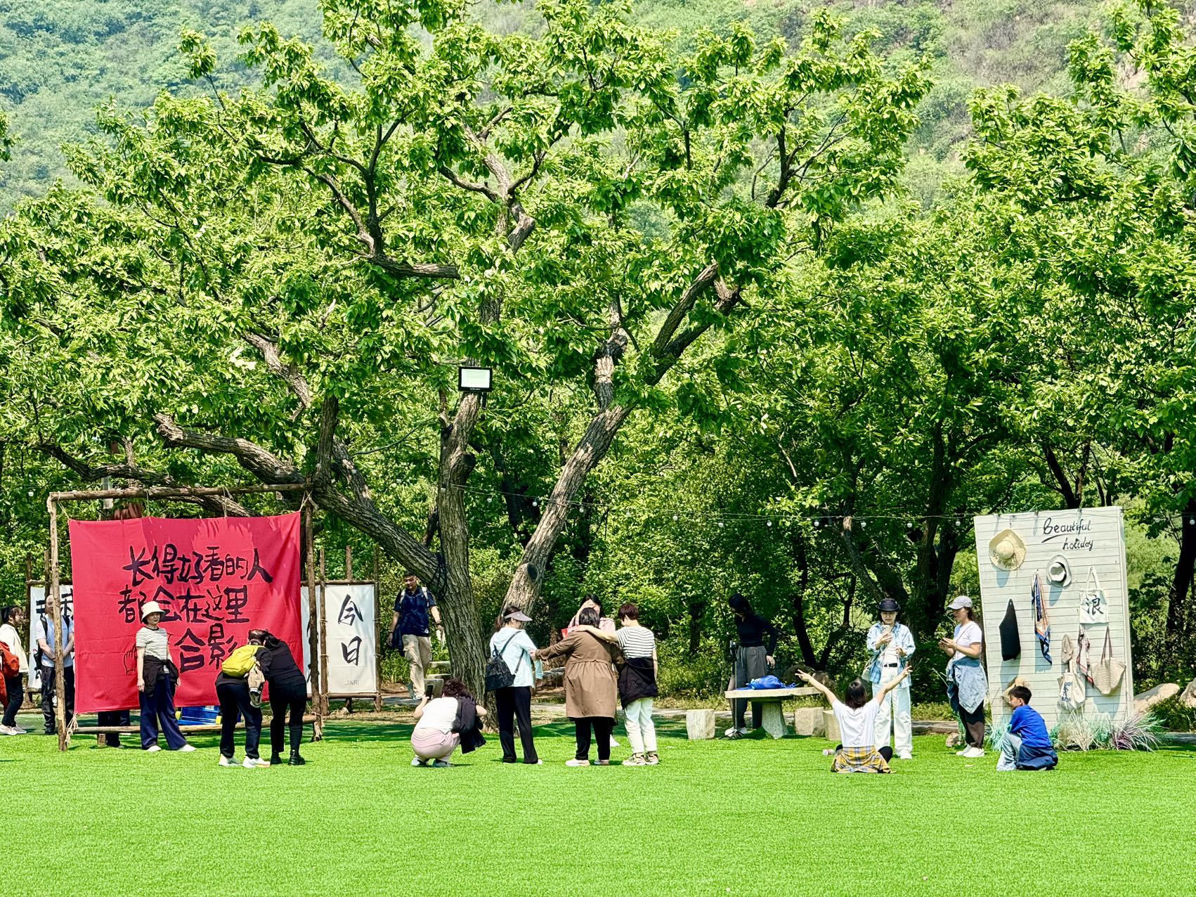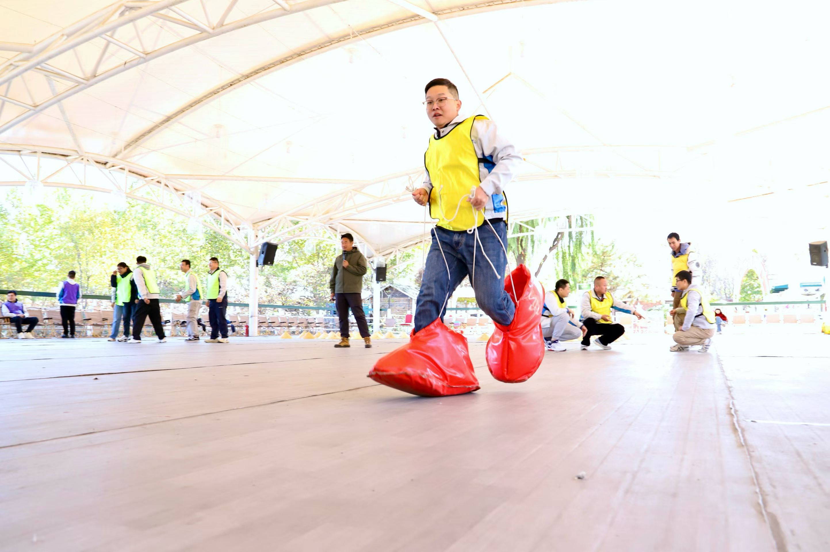 10:30--12:30 到达向野营地,组织进行轻松惬意,氛围拉满的毛毛虫,同心击鼓,快乐大脚等团建游戏