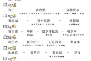 香日德镇 - 260km - 格尔木市中餐 - 午休 - 80km - 格尔木胡杨林或察尔汗盐湖 - 格尔木市;