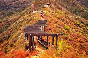 顺义五彩浅山步道途经唐指山、平原景观林、十二涧、峪子沟林荫步道、骆驼峰等景区,有着青山、绿水、果园、山地、森林等诸多景观。既能体验登山步道的险峻,