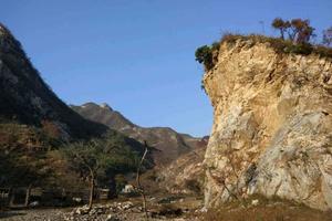 从主峰下来的路很好走,但基本上在绝壁边行走,路边灌木深厚,不用操心掉下悬崖。甸胡沟沟壑深沉,天门山绝壁垂直,山峦叠嶂,崖壁上凌空的山桃花,如同中了邪气般的妖冶。感觉这神秘的地貌里面不住些神仙鬼怪会很奇怪。超过这段跌宕的风景,绕过左手的小山包,忽然间大路朝天,铁驼山挥手再见。