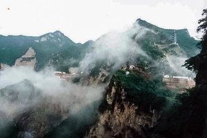 圣莲山景区很大,国家4A级景区,"道家风骨佛光照,奇峰峻石圣水灵”,这是圣莲山的真实写照。正午时分,阳光一览无余地照耀在陡峭的岩壁台阶上。