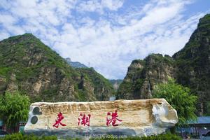 东湖港 位于十渡园区十五渡,与野三坡毗邻,距北京市区 106 公里,是绿色旅游和度假的胜地。景区内翠绿的檀林,蜿蜒的千年古藤遍布整个峡谷,蜿蜒小道曲折而上,潺潺小溪足下流淌,颇具诗意。奇特的"三叠瀑布"落差115米,自女儿泉急流直下,水雾随风飘落,如银河般挂在峭壁上。"华北第一梯"倚峭而建,有"登云梯而览群山"之势。这里以瀑高、潭多而享有盛名,素有"幽谷叠瀑、檀林氧吧"的美誉。另有夫妻峰、元阳峰、东湖巨佛、石刻画廊、嫦娥伴金蝉、观音洞等十余处景观。东湖港风景区是国家级AAAA级景区。