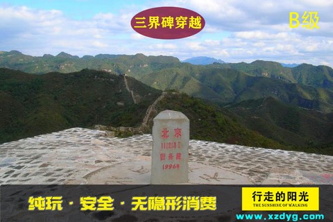 一脚踏三省、转身跨省外、金秋来登高、探访真相来。地处河北、天津、北京交界处,有明代石长城,长城也便成了京津冀三省市的边界线。国务院于96年设立了一处界碑,为京、津、冀三省的交界处,西面是北京平谷,北面为河北兴隆、东南面为天津蓟县。这是华北地区唯一立于长城墩台之上的三省市分界碑。山坡坡度适中,自然环境优美, 非常适宜登山。
