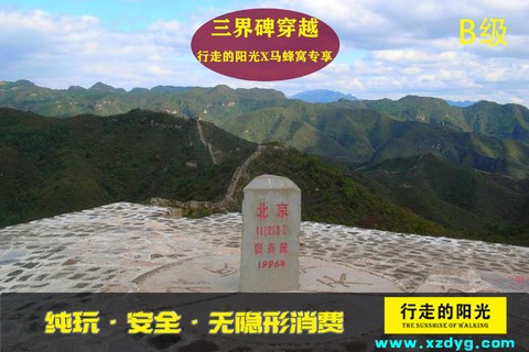 一脚踏三省、转身跨省外、金秋来登高、探访真相来。地处河北、天津、北京交界处,有明代石长城,长城也便成了京津冀三省市的边界线。国务院于96年设立了一处界碑,为京、津、冀三省的交界处,西面是北京平谷,北面为河北兴隆、东南面为天津蓟县。这是华北地区唯一立于长城墩台之上的三省市分界碑。山坡坡度适中,自然环境优美, 非常适宜登山。