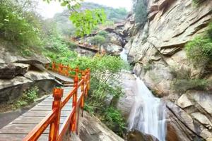 走过湖区之后,便可以沿栈道开始上山。清凉谷内的山势俊秀,有很多岩壁和形状各异怪石,山间的树木也很多,可以体会到清新幽静的感觉。爬山路上会经过很多碧绿的潭水,还有飞流的瀑布,瀑布形态各异,景观十分优美,适合拍照。在山腰处的比较大的湖水中还可以划船游玩,体验漂流等。一路登到山顶,可以俯瞰周围的山峦和山脚下的景区湖水,视野比较开阔,一片翠绿的景色也让人心旷神怡。