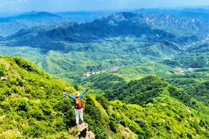 ❀燕羽山,位于延庆县境内井庄镇和大庄科乡的交界线上,西距延庆镇约15公里。为军都山主要山峰之一,海拔1278米。山体呈北东向延伸,东北与十八盘岭、风驼梁一脉相连,西南与八达岭隔川相对,并与三山共同突起于延庆盆地东南侧。阴坡有小片灌木林,东麓山间产杏。燕羽山当地人也有称燕山的,远眺燕羽山,像一个挺拔的火山锥立于群山之上,双峰耸立,像燕子的尾巴。近看则像两三根羽毛刺向青天。这可能就是燕羽山得名的由来吧。站在山巅,眼前一片开阔。妫川盆地的山丘、河流、道路、村庄历历在目,如同一块巨大的盆景,望远处重山峻岭,美不胜收。延庆县城栖居中央,村庄房屋星星点点,南边的大学城高楼林立。山脚下的柳沟村亮光灿灿。▌ 报名咨询