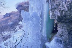 上太湖冰瀑位于北京市房山区韩村河镇的圣水峪村,村落因地近汉唐以来佛教圣地上方山,为牤牛河谷上游,故而得名。罕见的3层天然冰瀑,也是非常推荐的一个,完全成型后会有6、7层,冰瀑每层形态各异,近距离看到石头上悬挂的冰,非常震撼,饱满的像是蘑菇云又像是一堆堆白雪,满足你童话世界的梦