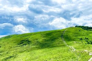 ❥汗海梁位于位于河北张家口崇礼县四台嘴乡正北方向15公里处。汗海梁为典型的亚高山草甸地形,远处的汗海梁时,高山草甸绵延无穷,一条山岭横亘眼前,梁顶看得就像屋脊一样平直,汗海梁最高点海拔2052米,明显标志物为信号铁塔。汗海梁顶有一块平坦的地域名为卧牛盘。登临汗海梁,向东南可遥望玉石梁,向北整个崇礼的美丽山川尽揽怀中,塞外天地别有一番风味。