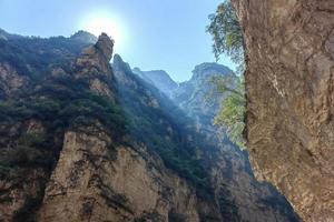 南石洋大峡谷拥有一峡九谷,峡谷全长20公里,岩石、地层种类齐全,包括多种沉积岩、变质岩和火成岩,历经亿万年的地层和岩石经地壳运动,构成了景区最具吸引力的峡谷风光,纵深数十里的大峡谷,两侧百余米高峰如刀削般陡峰,峡谷、奇峰、悬崖构成了雄、奇、险、幽于一体的复杂地貌,蕴育出天王塔、罗大天、悬棺、一线天、天井、黑龙潭、擎天一柱等极其丰富的地文景观,是京西活的地质教材。在峡谷中穿行,山峰笔直挺立,奇峰怪石比比皆是,可以尽情欣赏大自然的鬼斧神工。