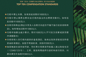 5、旅行社有权根据实际情况对行程先后顺序做出合理调整,但不影响原定标准及游览景点;如遇旅行社不可控制因素(如塌方、地震、洪水、泥石流、恶劣天气、塞车、航班延误、景区临时关闭不接待等)造成行程延误或不能完成景点游览,旅行社不承担违约责任。